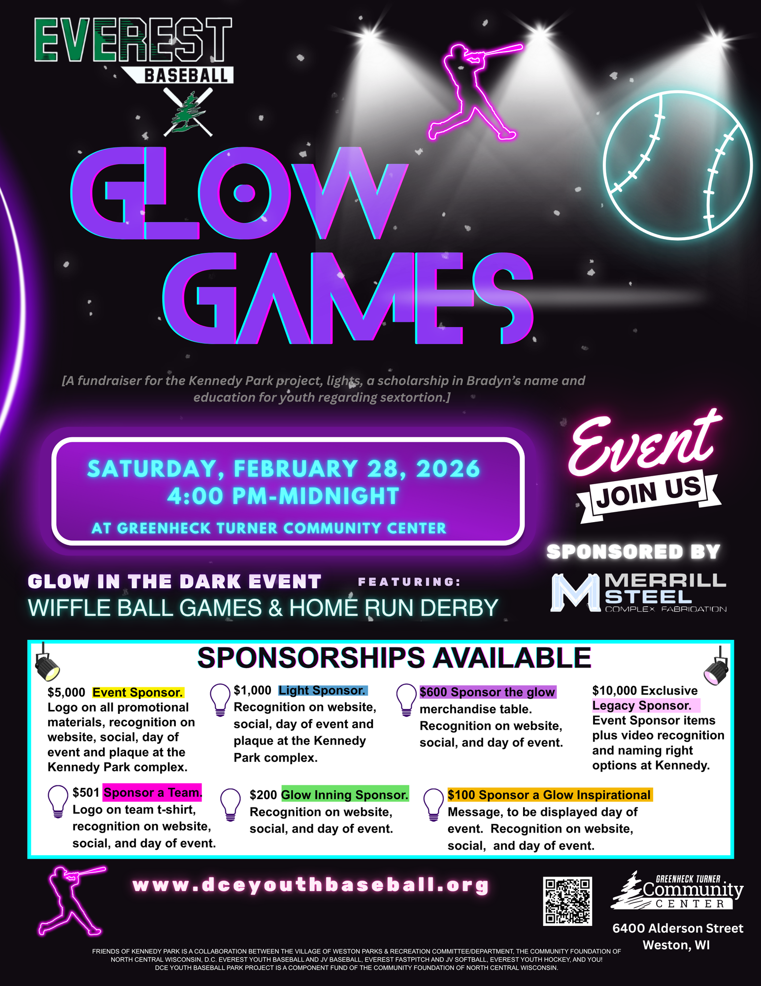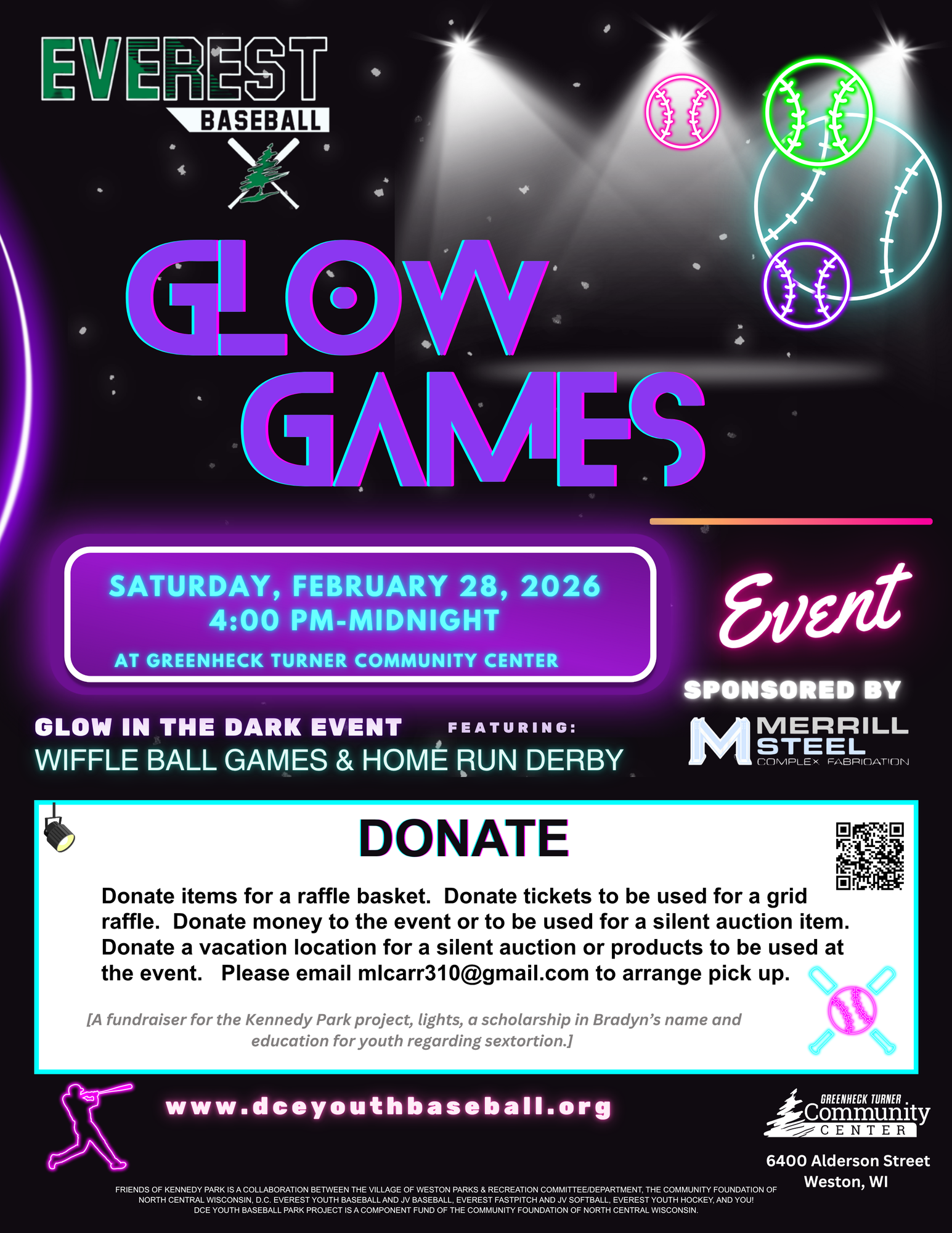 Friends of Kennedy Park is a collaboration between the Village of Weston Parks & Recreation Committee/Department, the Community Foundation of North Central Wisconsin, D.C. Everest Youth Baseball and JV Baseball, Everest Fastpitch and JV Softball, Everest Youth Hockey, and YOU! DCE Youth Baseball Park Project is a component fund of the Community Foundation of North Central Wisconsin.